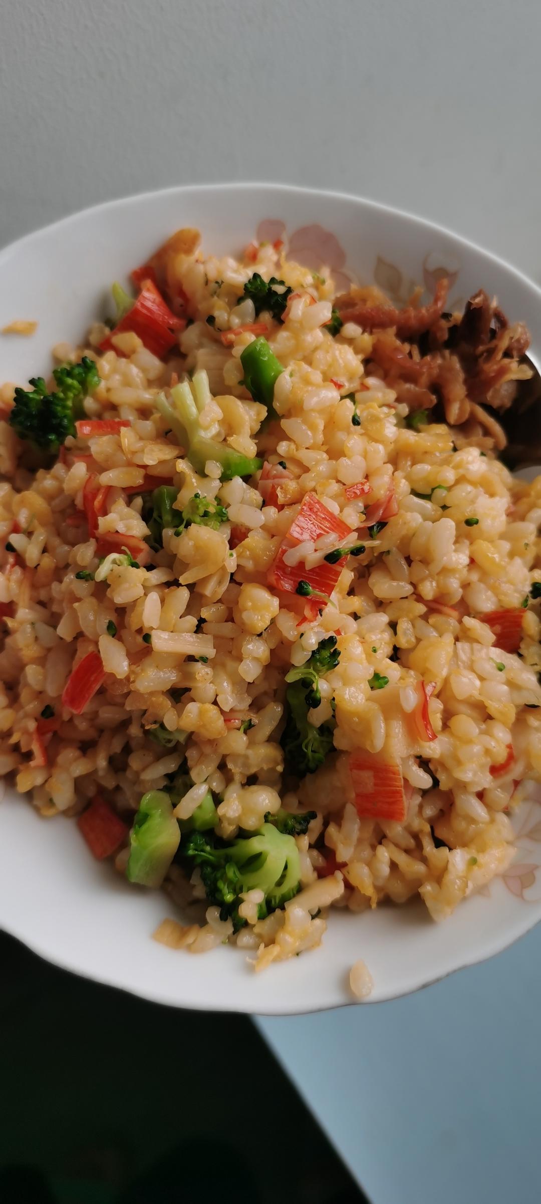 五颜六色的炒饭加一勺开洋菜脯,午饭搞定