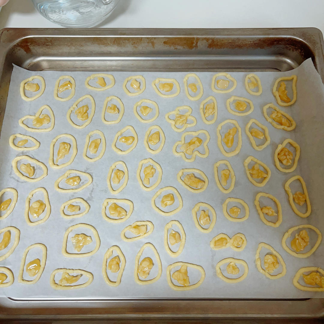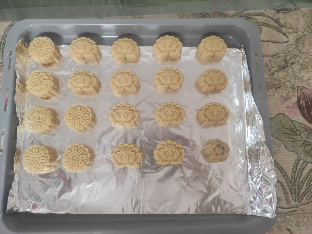 170度上下火22分钟,最后几分种面上盖油纸,中下层,每个约30克