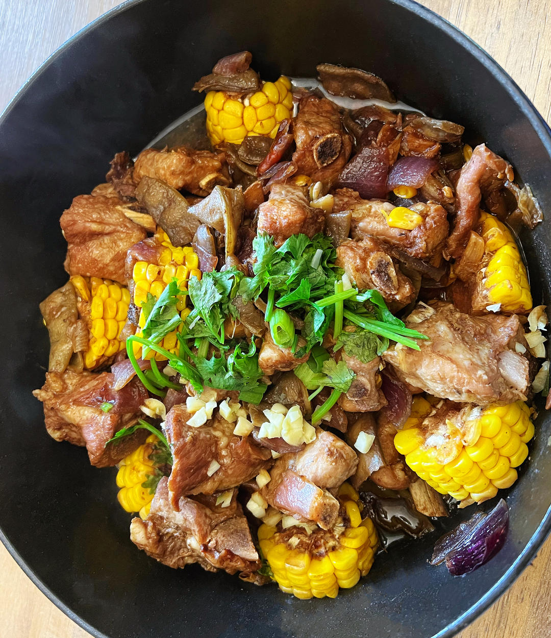 有点焦虑收不了汁,冰糖加多了。老抽没有,放了两种酱油。