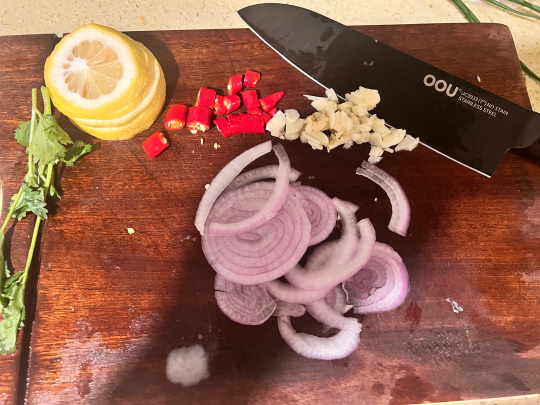 8oz生蚝肉,盐水浸泡,再清洗两遍