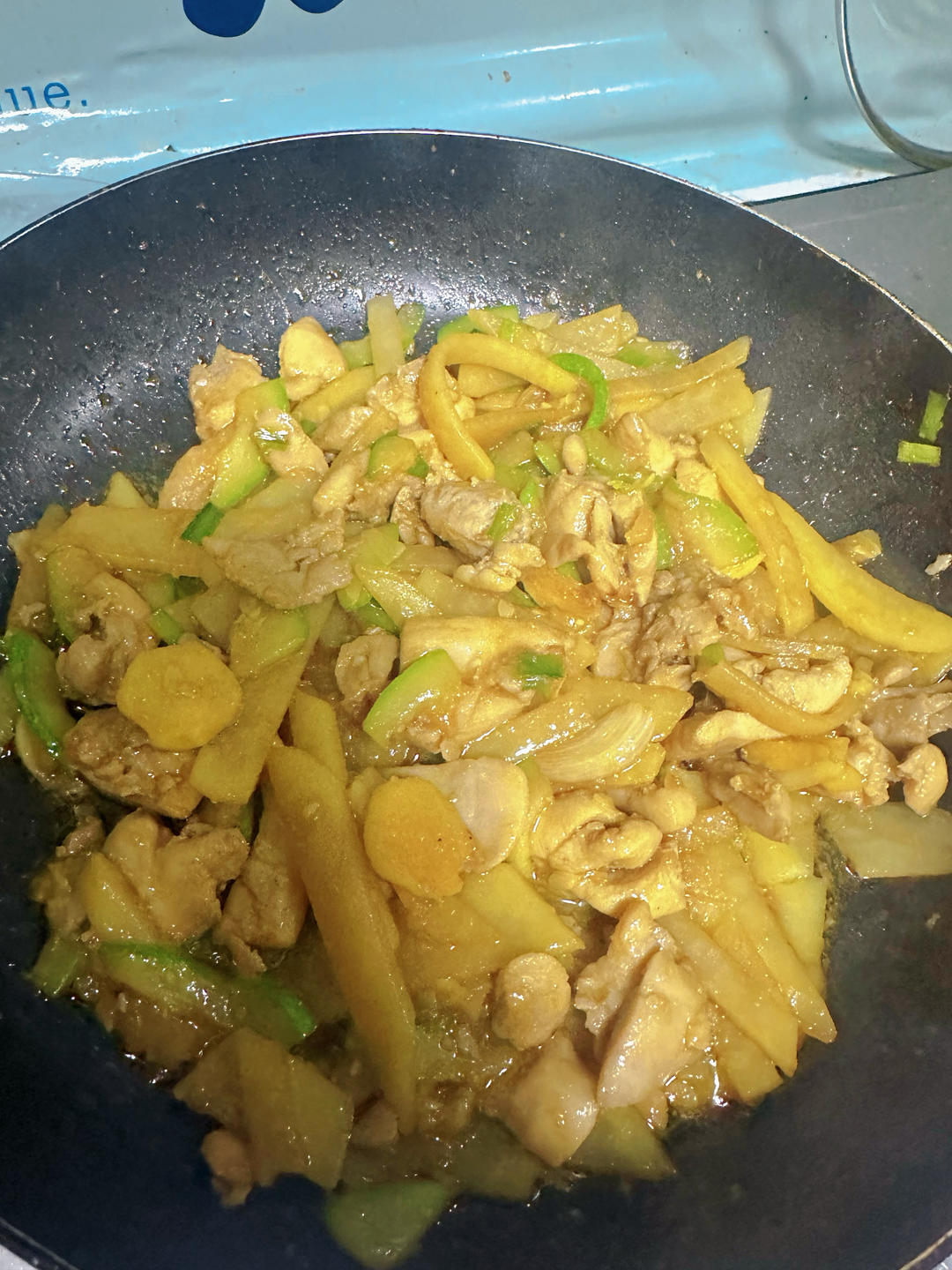 中午在外面吃烤肉,点的菜没吃完,带回来炒炒🤣