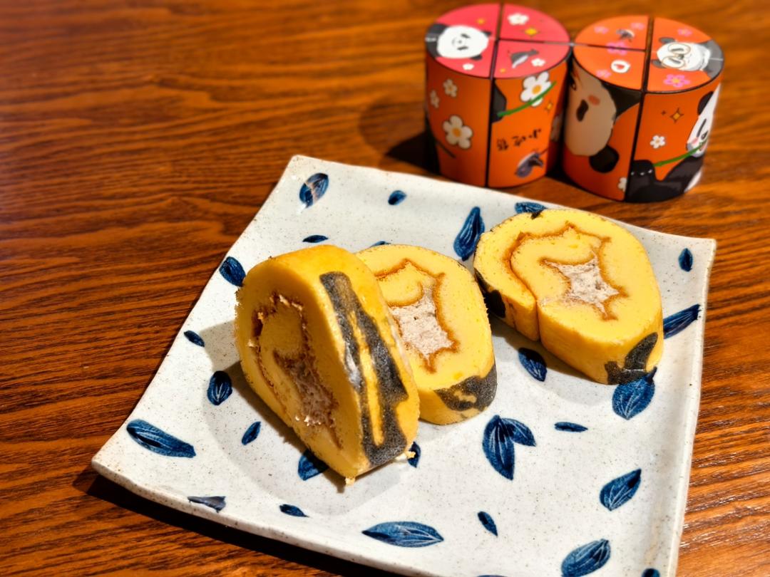 1.想搞点水墨画的效果;2.奶油只有70克,然后加了一根香蕉,所以卷的不是很圆😜