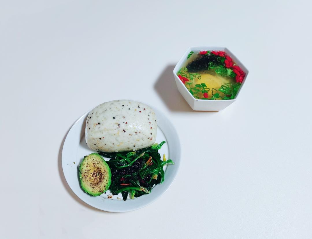 山药肉蛋汤&藜麦馒头&牛油果&拌菠菜~旅途劳累回来得补补,今早给自己做碗肉蛋汤吧。前腿瘦肉绞了山...