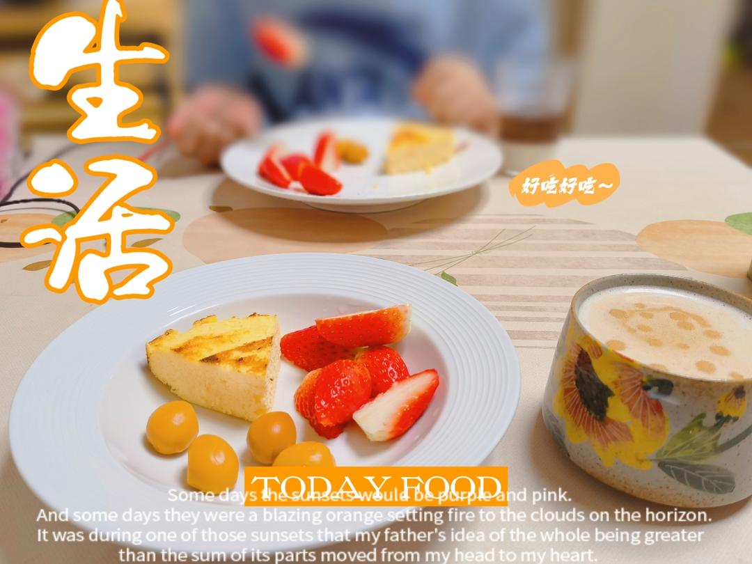 今日早餐:巴斯克蛋糕,鹌鹑蛋,草莓,咖啡。