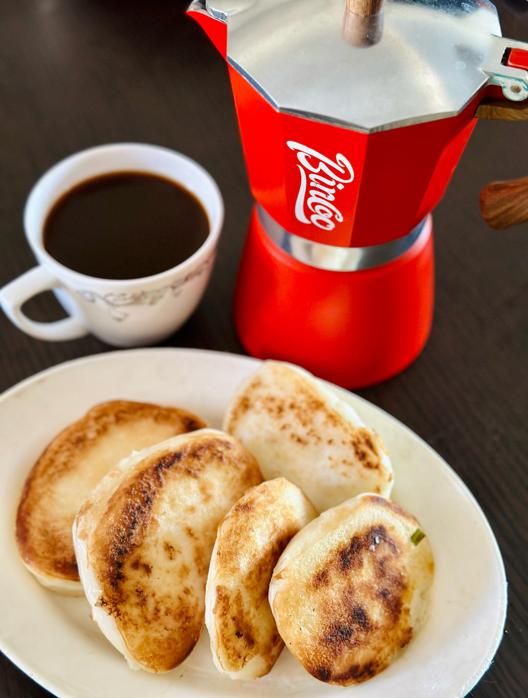 爸爸做的手工馒头煊软好吃😋切片加盐油煎真是太香了!再煮杯咖啡☕️,中西合璧,哈哈😆