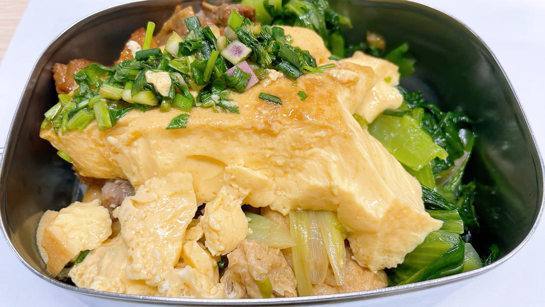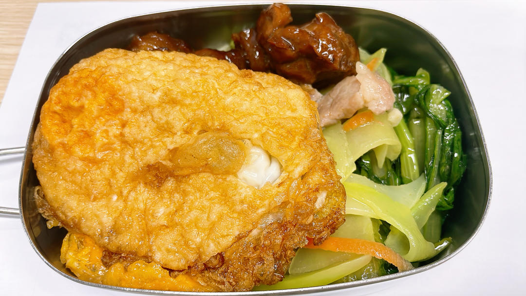 啤酒鸭,蒸蛋,菜花炒肉,芥菜