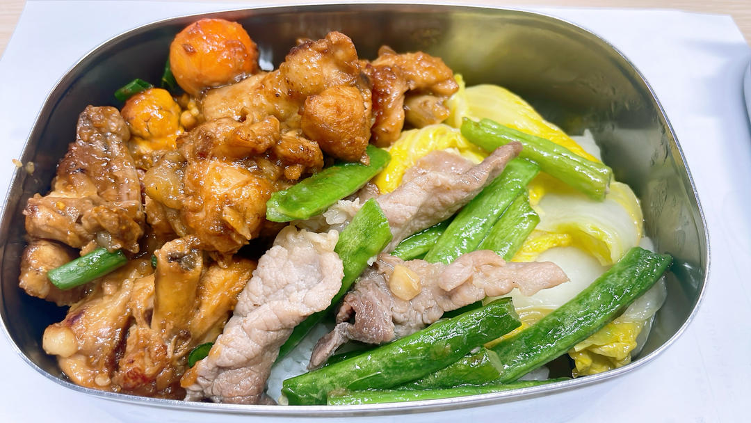 土豆炒鸡肉,四季豆炒肉,娃娃菜