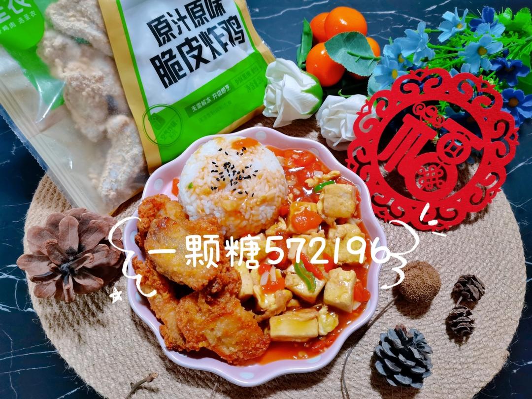 炸鸡番茄🍅拌饭。