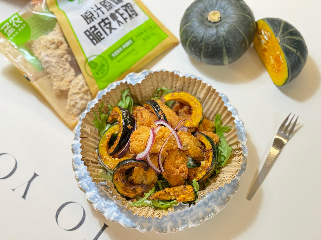贝贝南瓜炸鸡 ,圣农脆皮炸鸡和贝贝南瓜用空气炸锅烤一烤几分钟就轻松出餐,放到春节餐桌,全家都很喜欢!「圣农脆皮炸鸡」香香...