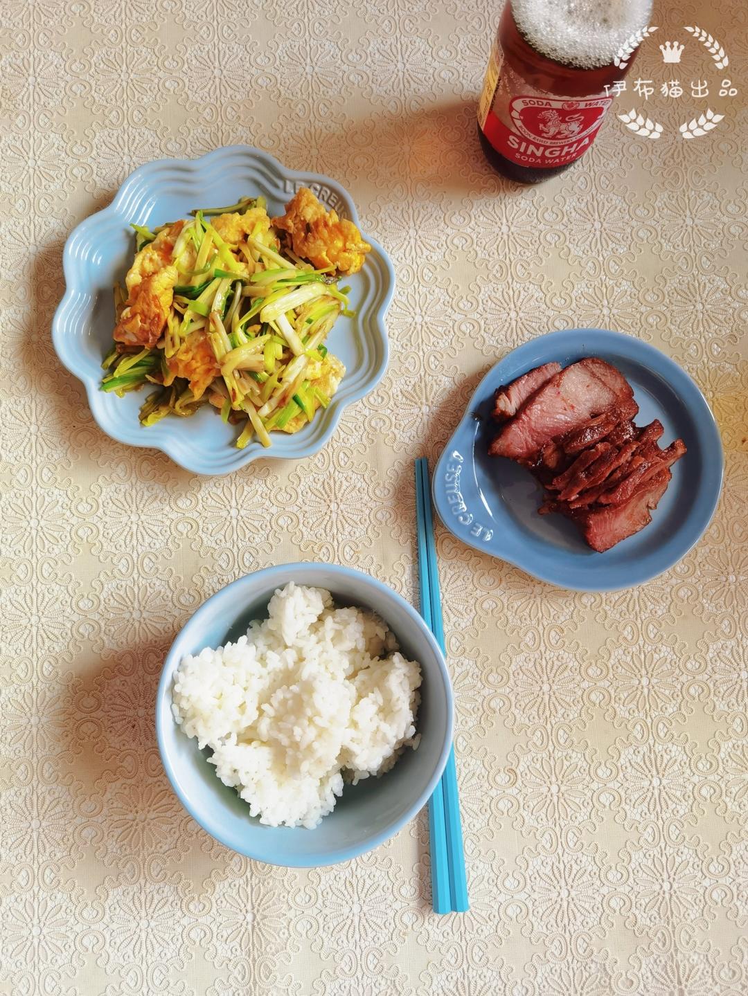 叉烧肉 蒜苗炒鸡蛋