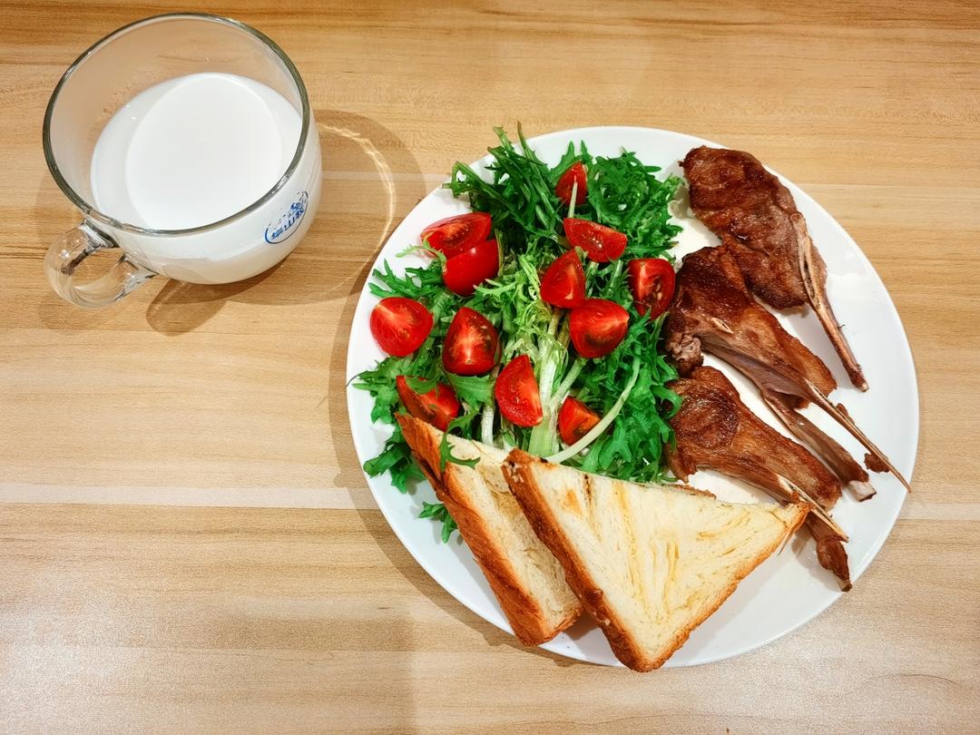 香煎T骨羊排,椰蓉吐司🍞蔬菜沙拉🥗🥛