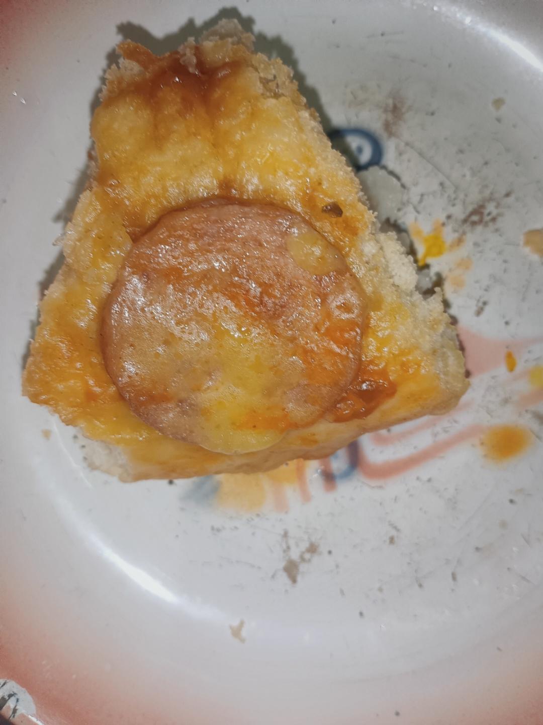 拉丝的腊肠芝士披萨🍕,感觉趁热吃才美味。