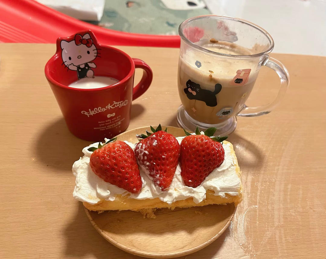 小柚柚和妈妈做的咖啡以及草莓蛋糕~