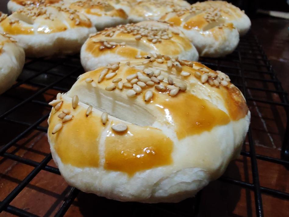 月儿圆圆挂天边,饼儿圆圆甜又甜。