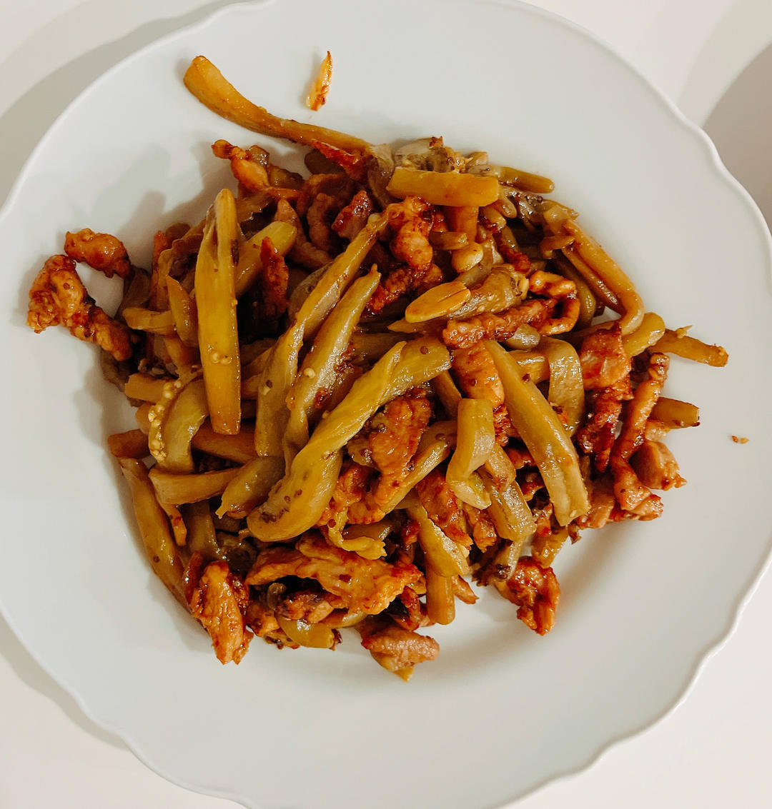 茄子炒肉,我总是觉得不得其法没有妈妈做的好吃,不过男朋友说这样做很好吃,就相信他吧😂