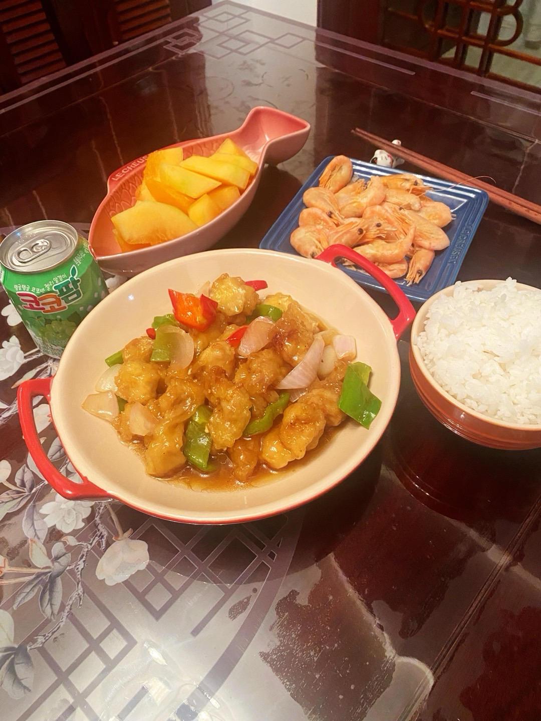 溜肉段,北极虾,白米饭