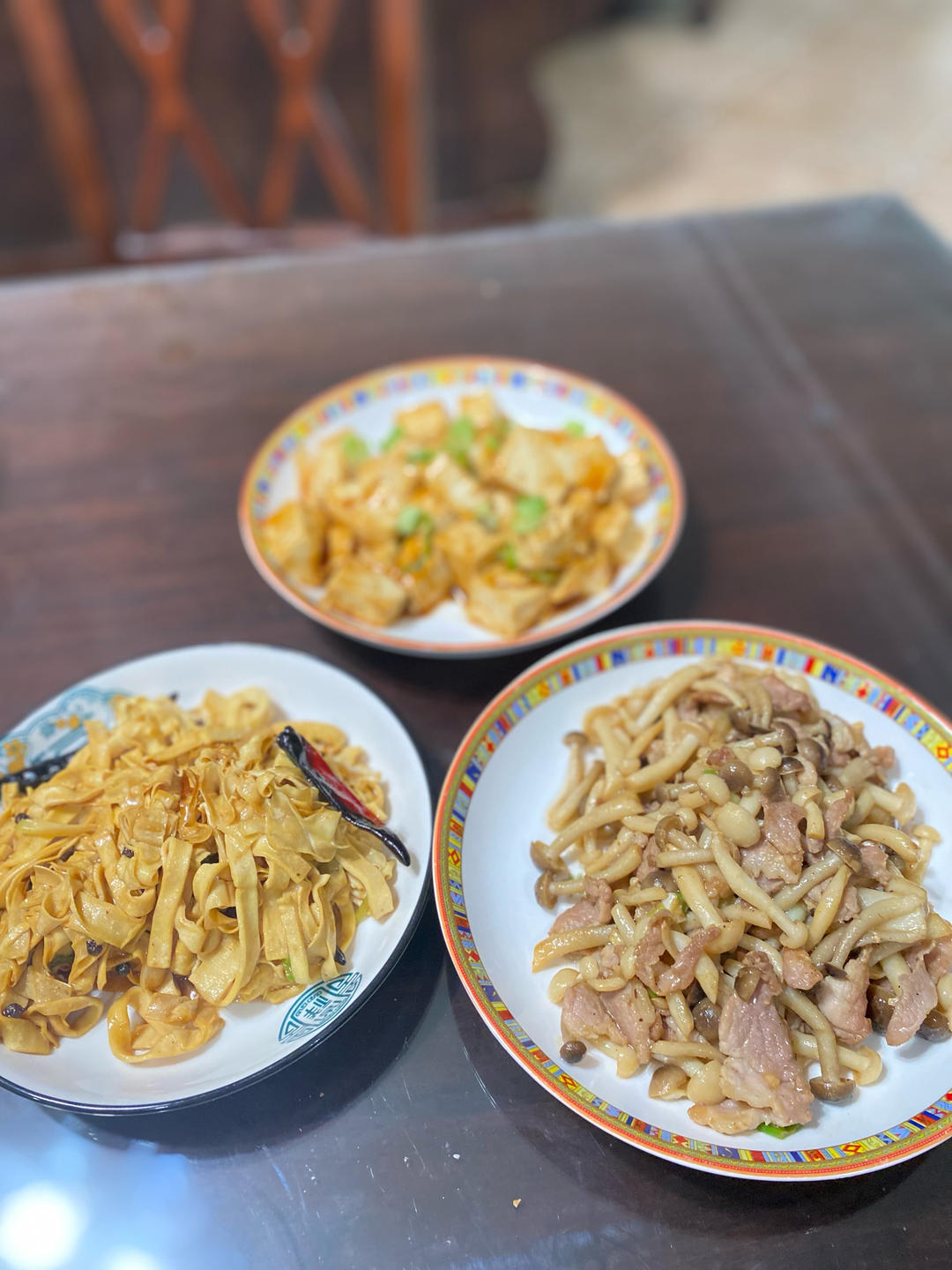 溜豆腐,肉炒杂蘑,炒干豆腐