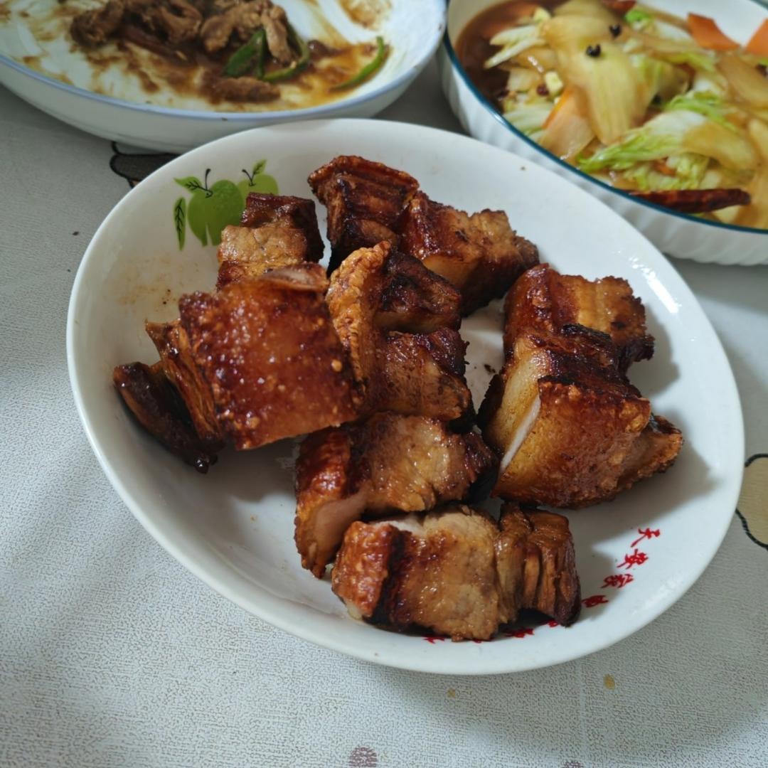 因为时间紧迫,没有按菜谱腌制,也没烤那么长时间,粗制滥造版,不过也挺好吃,皮当时吃不太焦,放凉了还是很焦的,谢谢作者分享...
