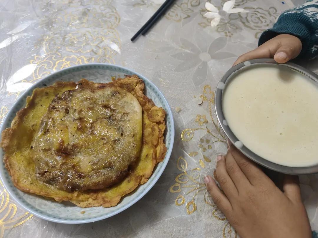 蛋饼《4个鸭蛋,面粉若干,凉开水》