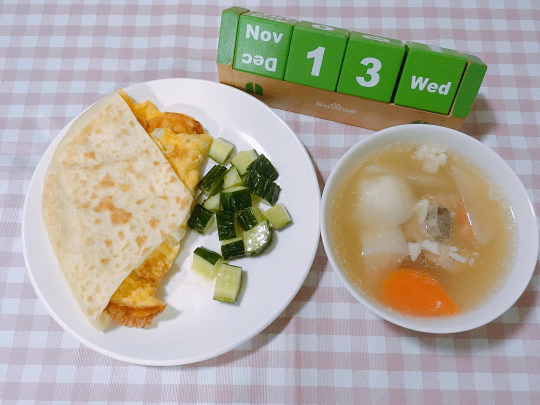 G8S1.W11Day2.大饼鸡蛋搭香油黄瓜🥒配羊肉萝卜汤