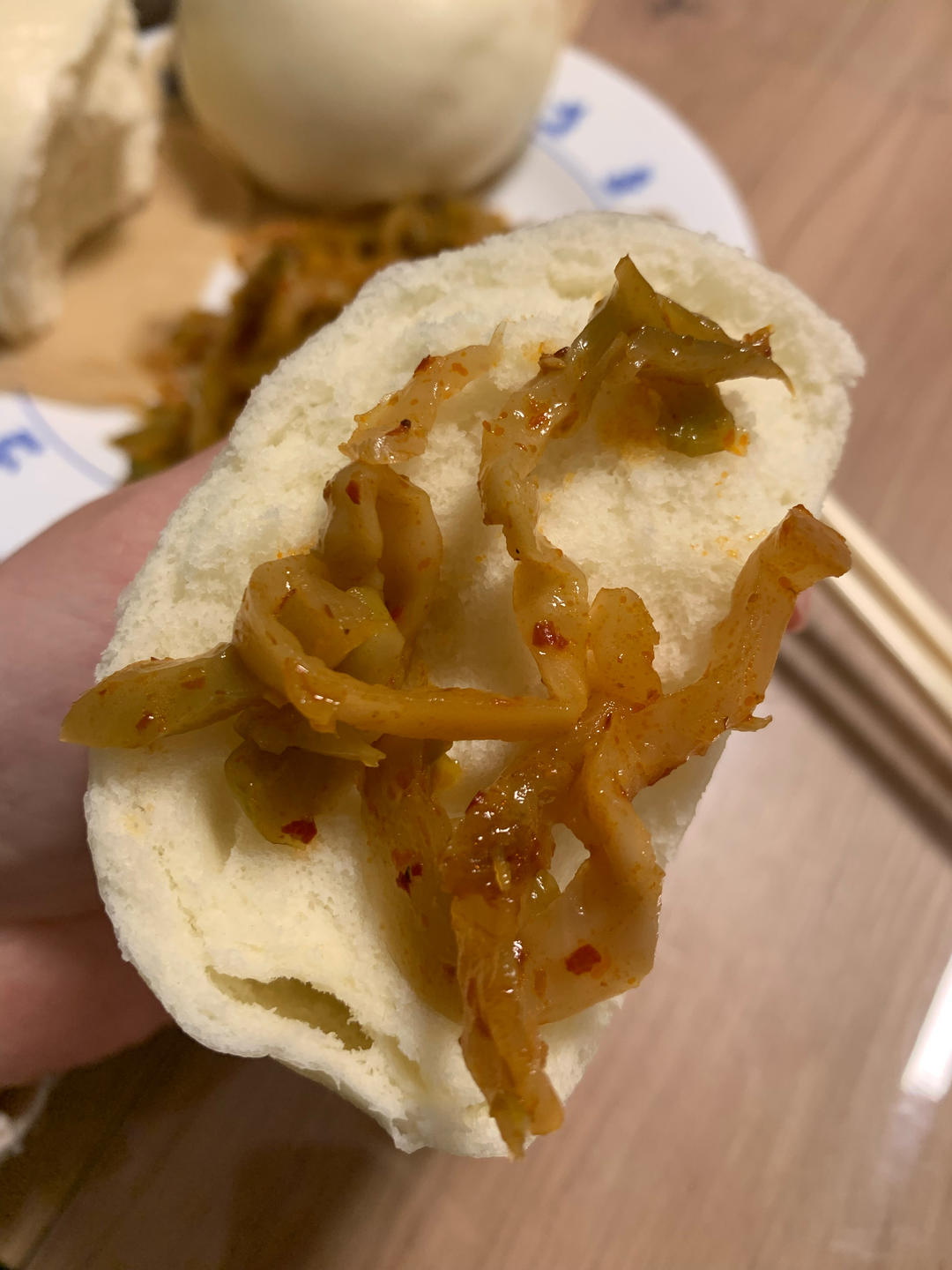 馒头夹榨菜