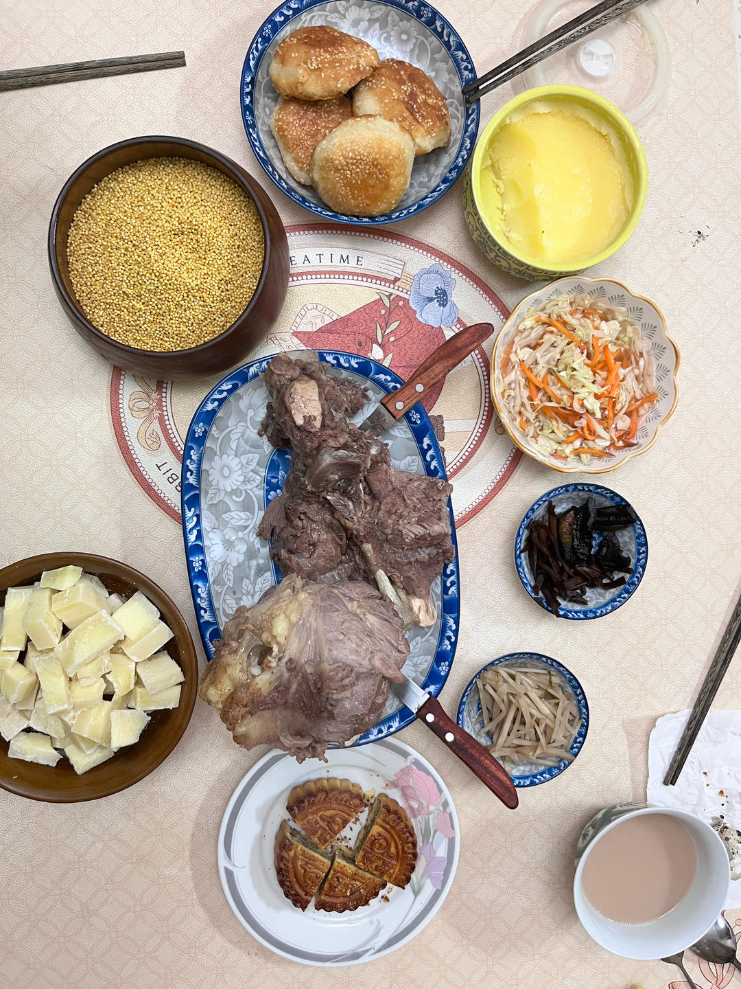 羊肉面片、炝拌萝卜皮