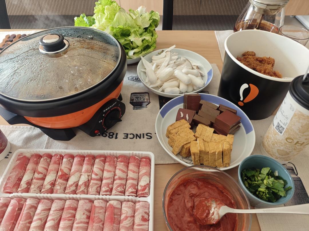 母子二人火锅午餐,还是在家吃舒舒服服