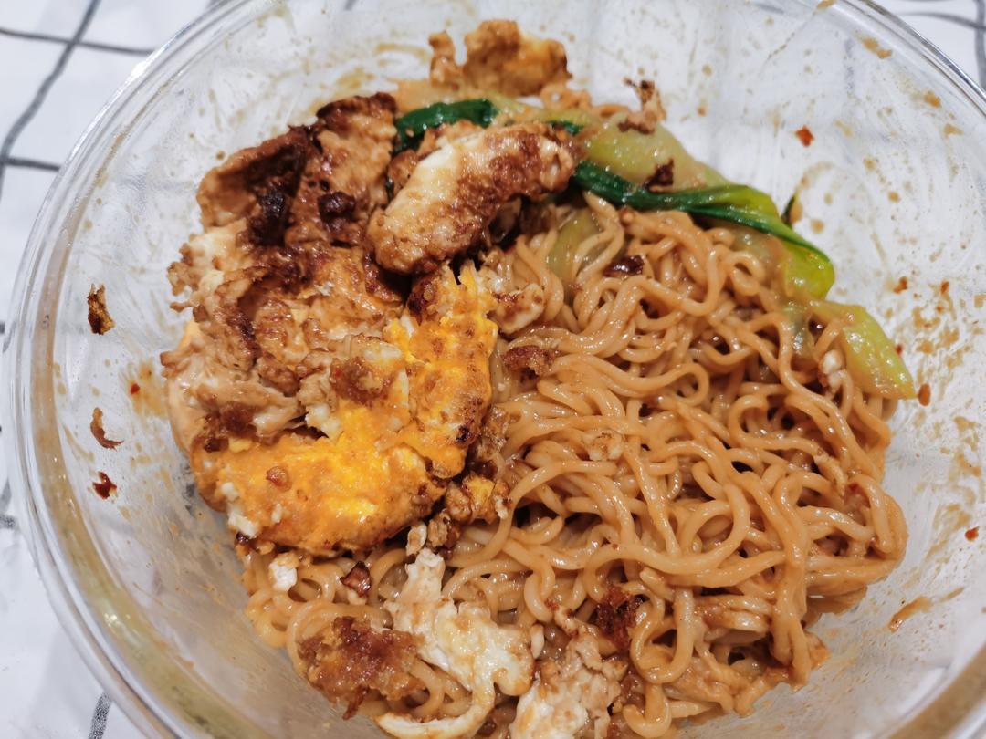 麻酱拌鸡蛋方便面