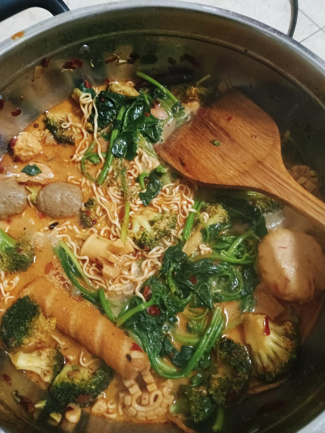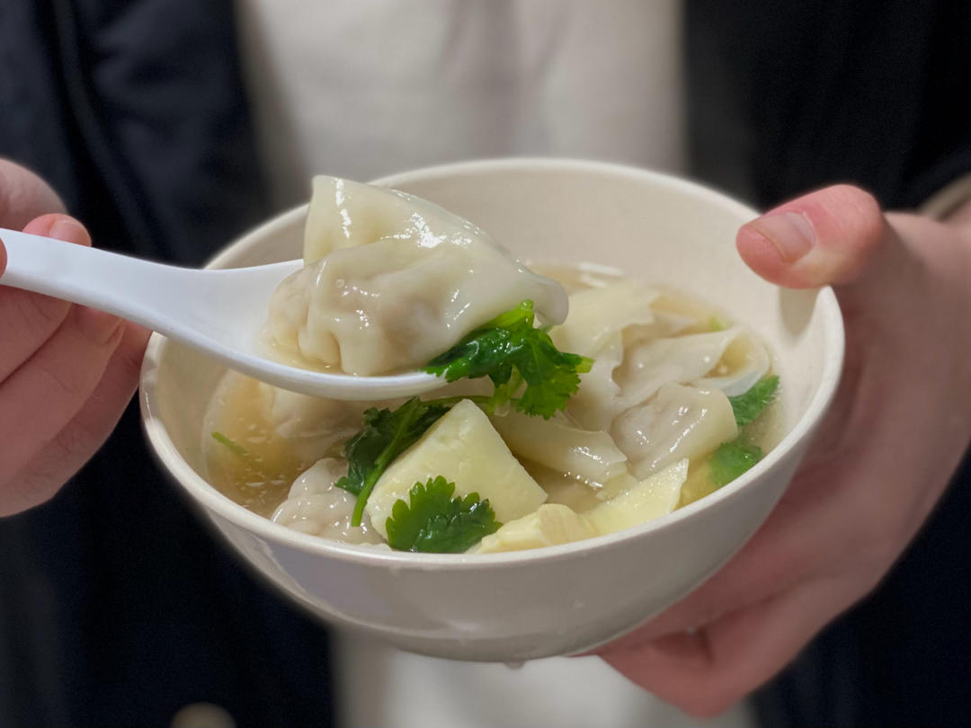 晚上包洋葱鲜肉馄饨配冬笋汤