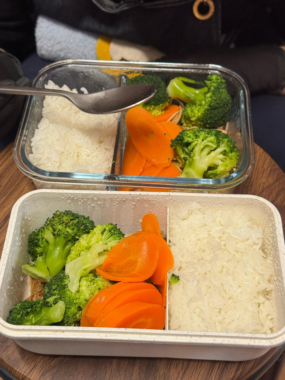 阿姨也买了分格盘,中午一起吃咖喱鸡饭套餐!