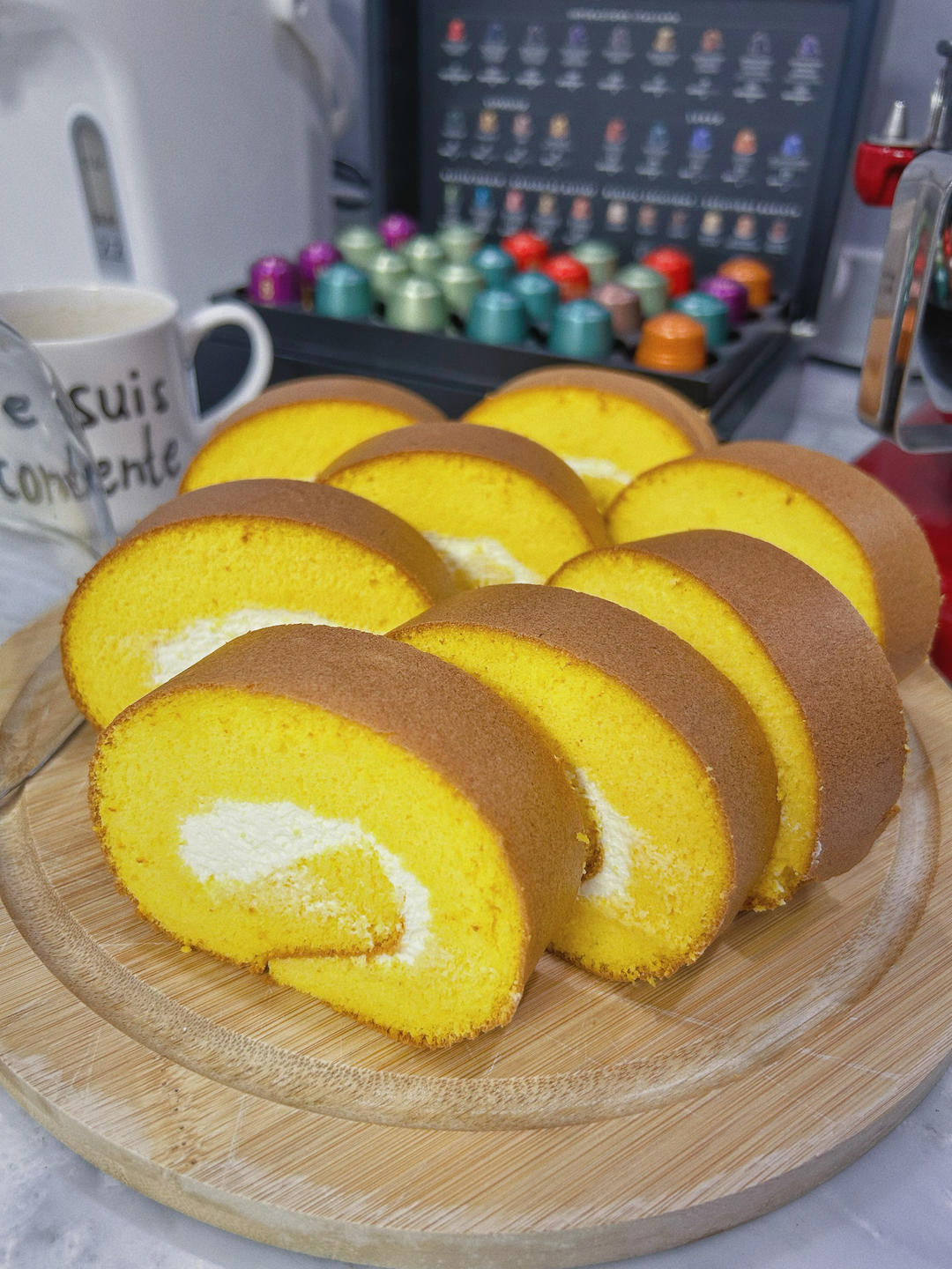 第一次做成一个正卷,mark一下:蛋白第二次加糖的时候加5g玉米淀粉,150度烤30分钟,...