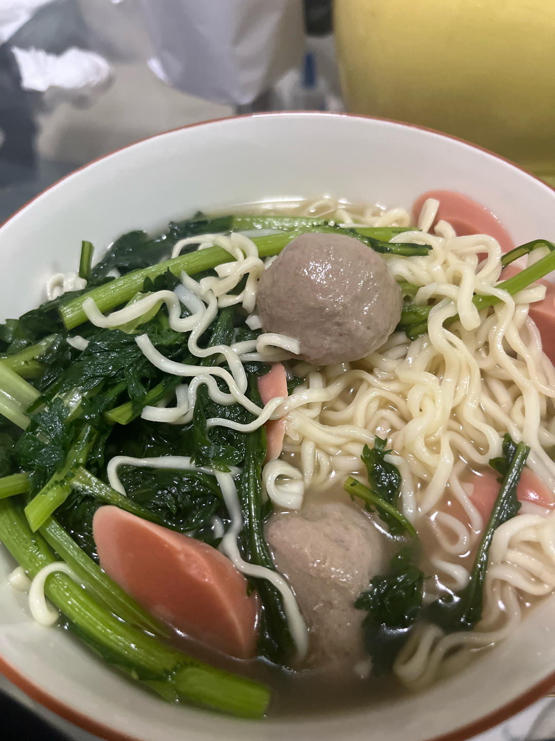 用了清汤面的调料,汤还可以,面味道有点淡,下次调料多一点