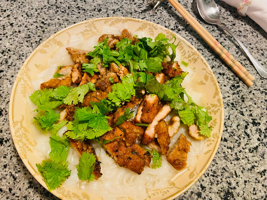 豬肉澆頭的粿條湯,皮蛋豆腐。