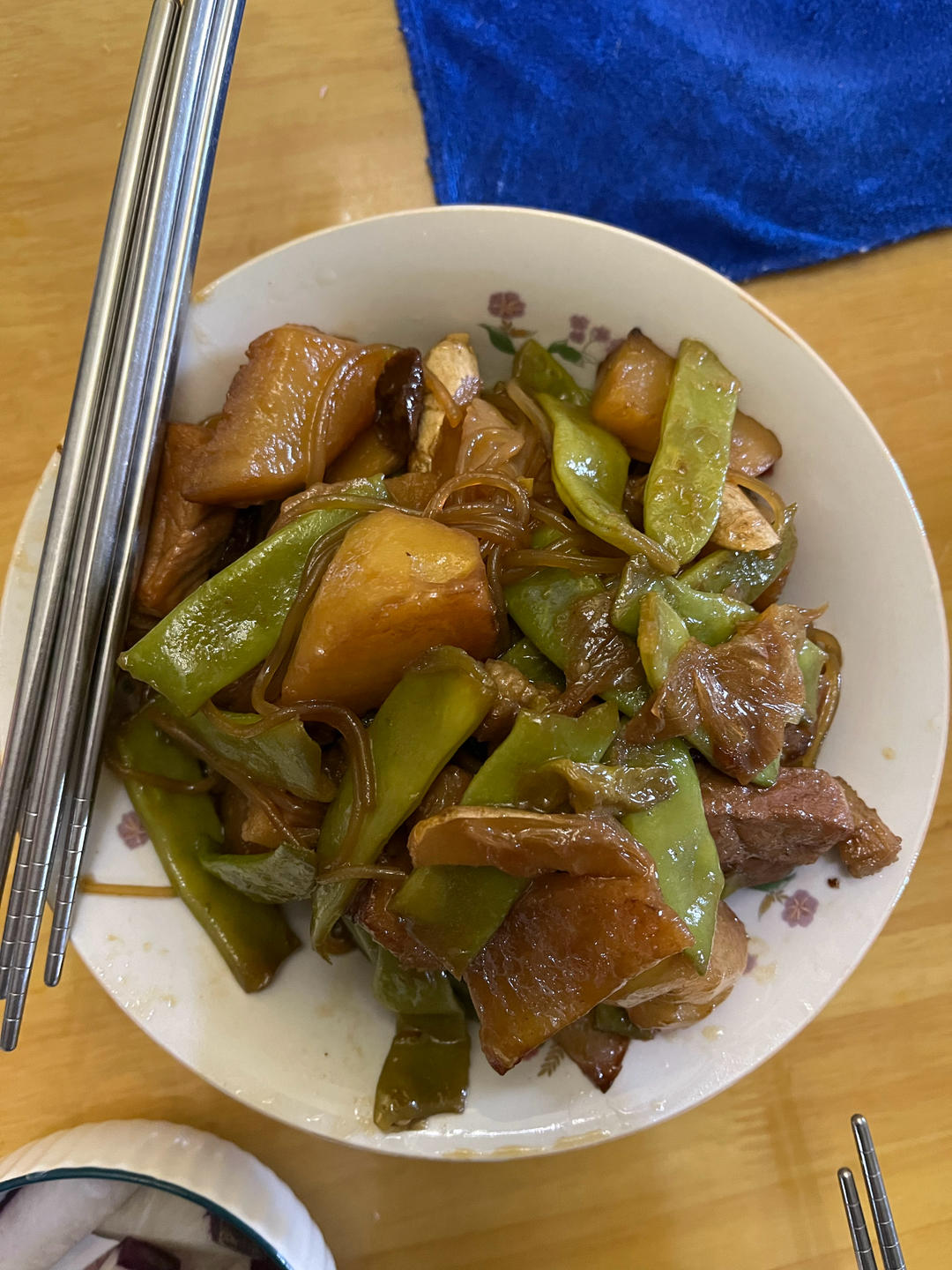 红烧肉炖土豆、豆角,王同学说一上午都在惦记我答应做的这个菜,不过还是没有超越她姥姥,光盘...