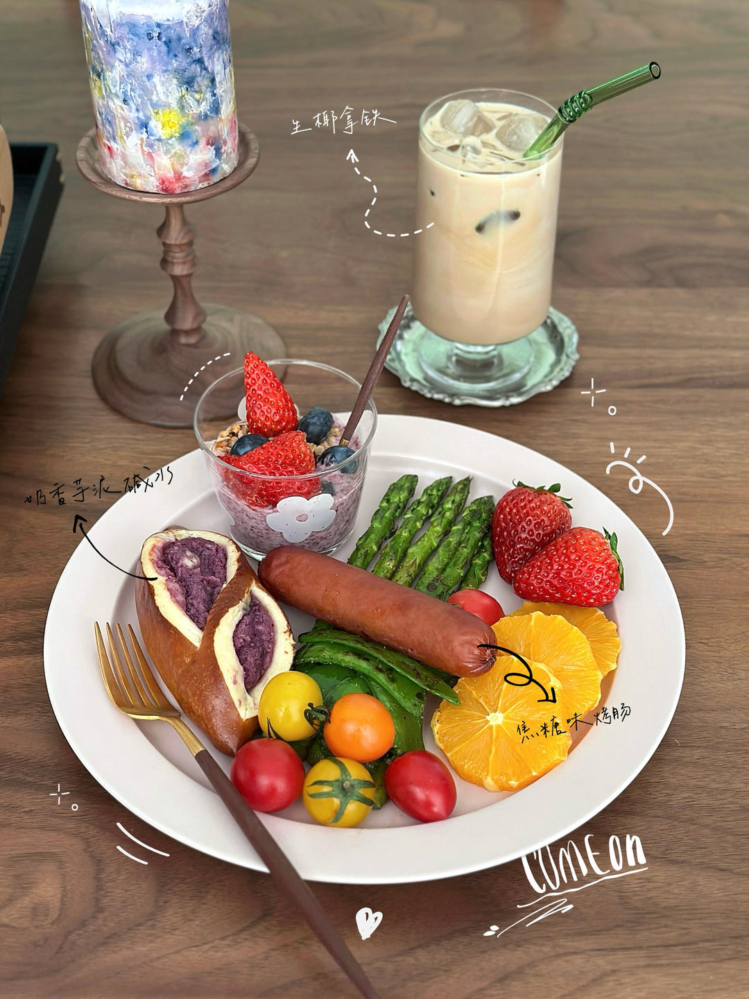 奶香芋泥碱水、生椰拿铁、焦糖风味香肠