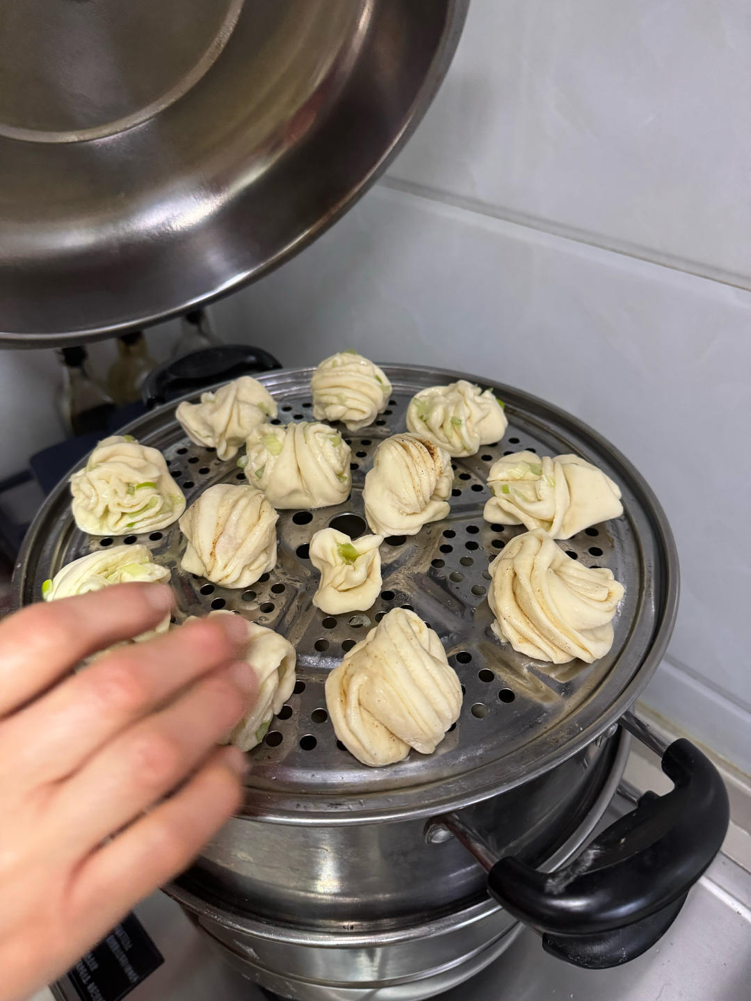 马蹄干贝蒸肉丸,拌肉馅,用盐,酱油,生姜末,葱姜花椒水。去皮马蹄切块拍碎,加到肉馅里团成团。黄酒泡干贝,撕碎,放入炖盅,...