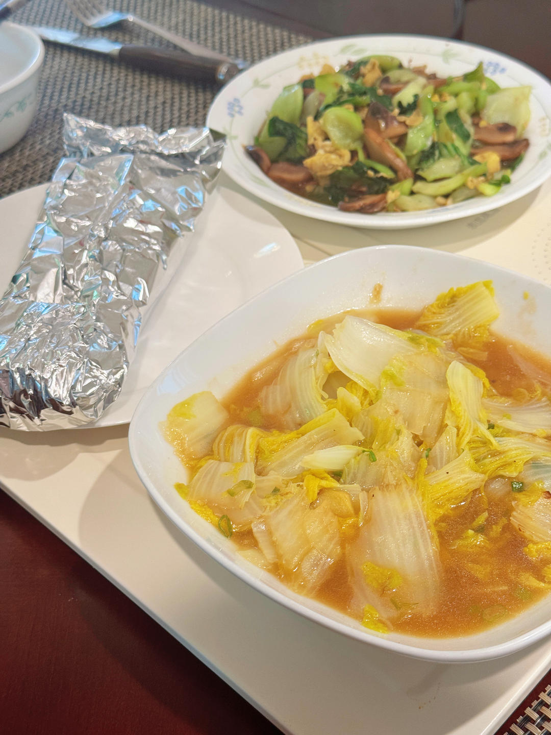 烤蔬菜最好吃的是烤大蒜。炸酱面做咸了,我一尝原来这个肉本身就是咸的,我这些天真是跟咸盐干上...