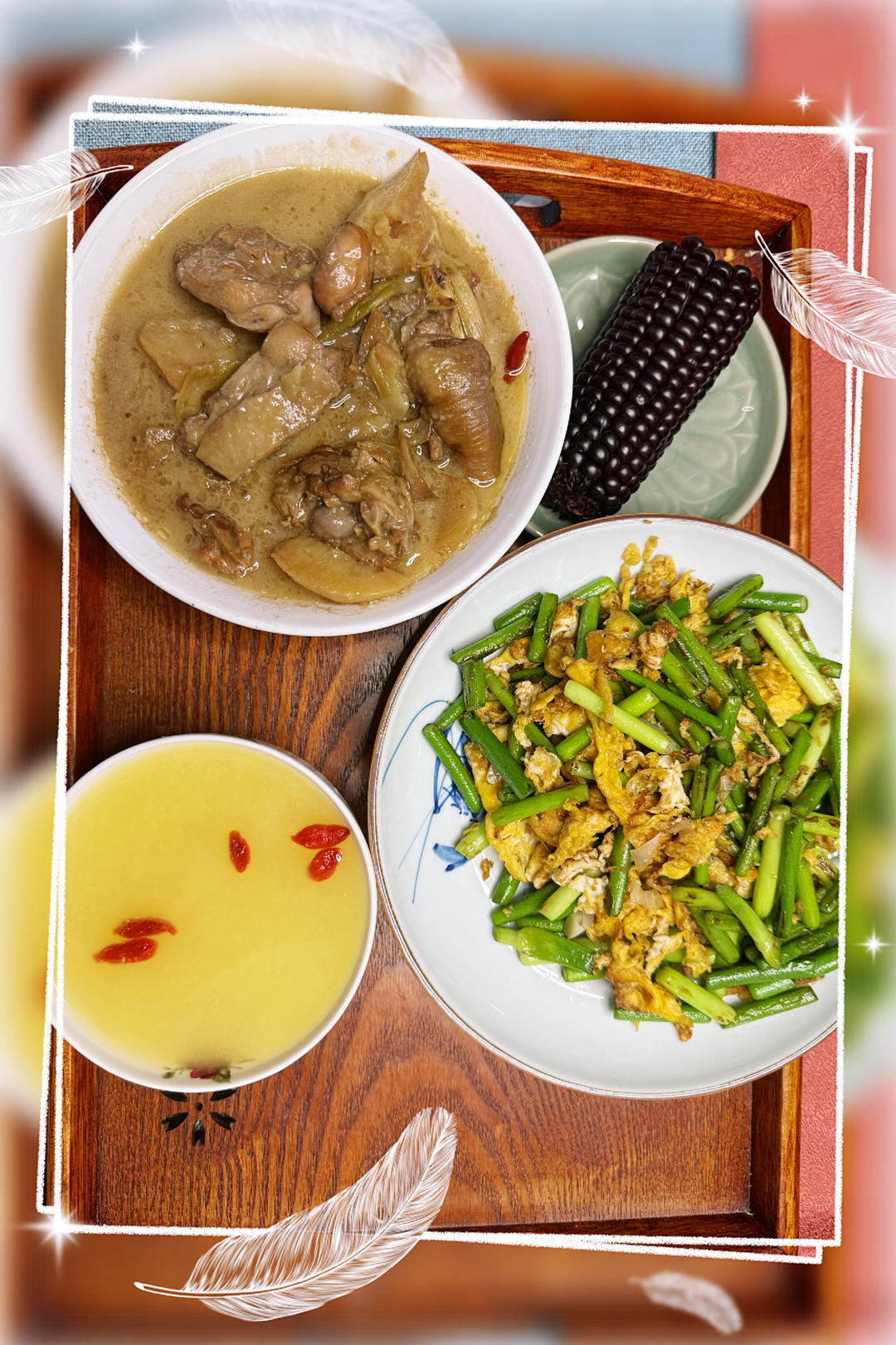 鸡蛋炒蒜苔➕玉米糊糊