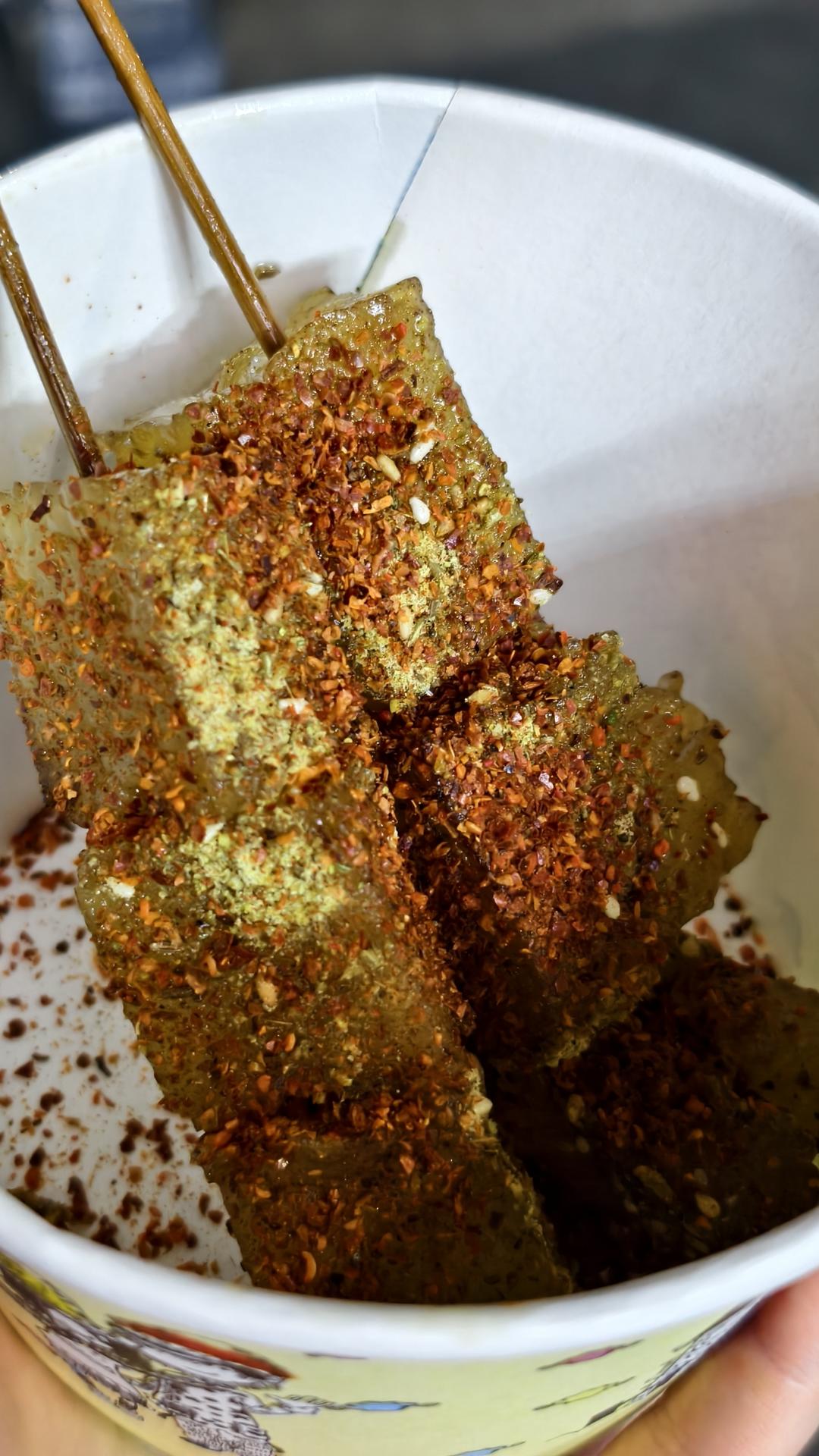 安阳炸皮渣,不知道是不是正宗的,像炸焖子或者红薯凉粉的口感,QQ弹弹很好吃!
