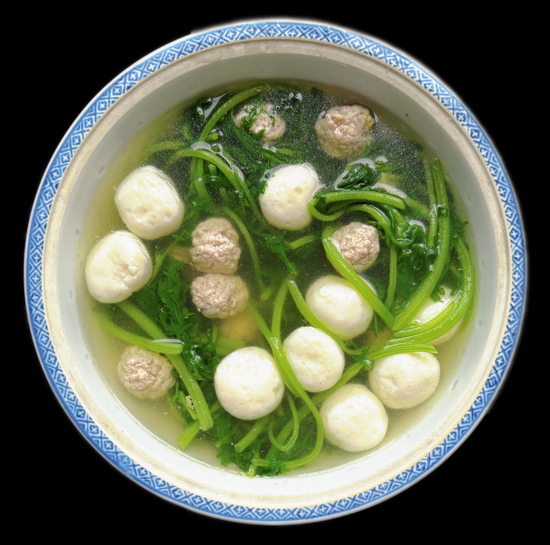 1、丸子茼蒿汤;