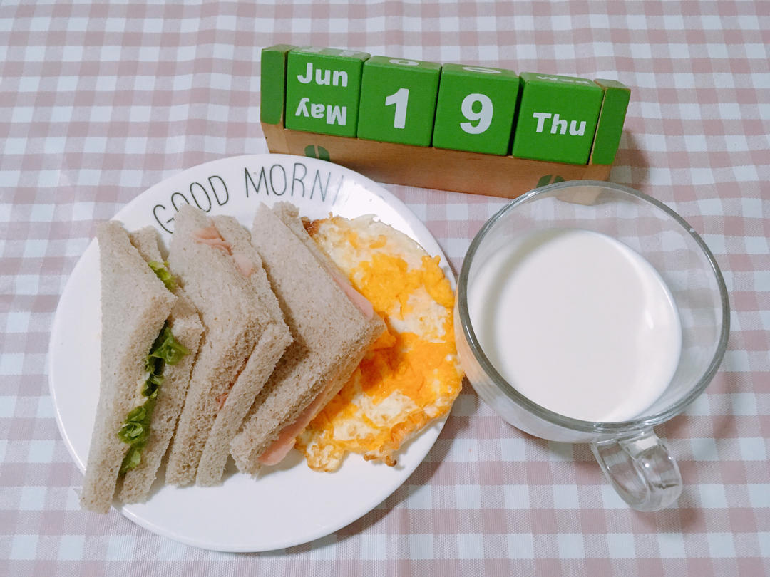G8S2.W18Day4.金枪鱼火腿鸡蛋芝士🧀三明治🥪加煎蛋🍳配牛奶🥛