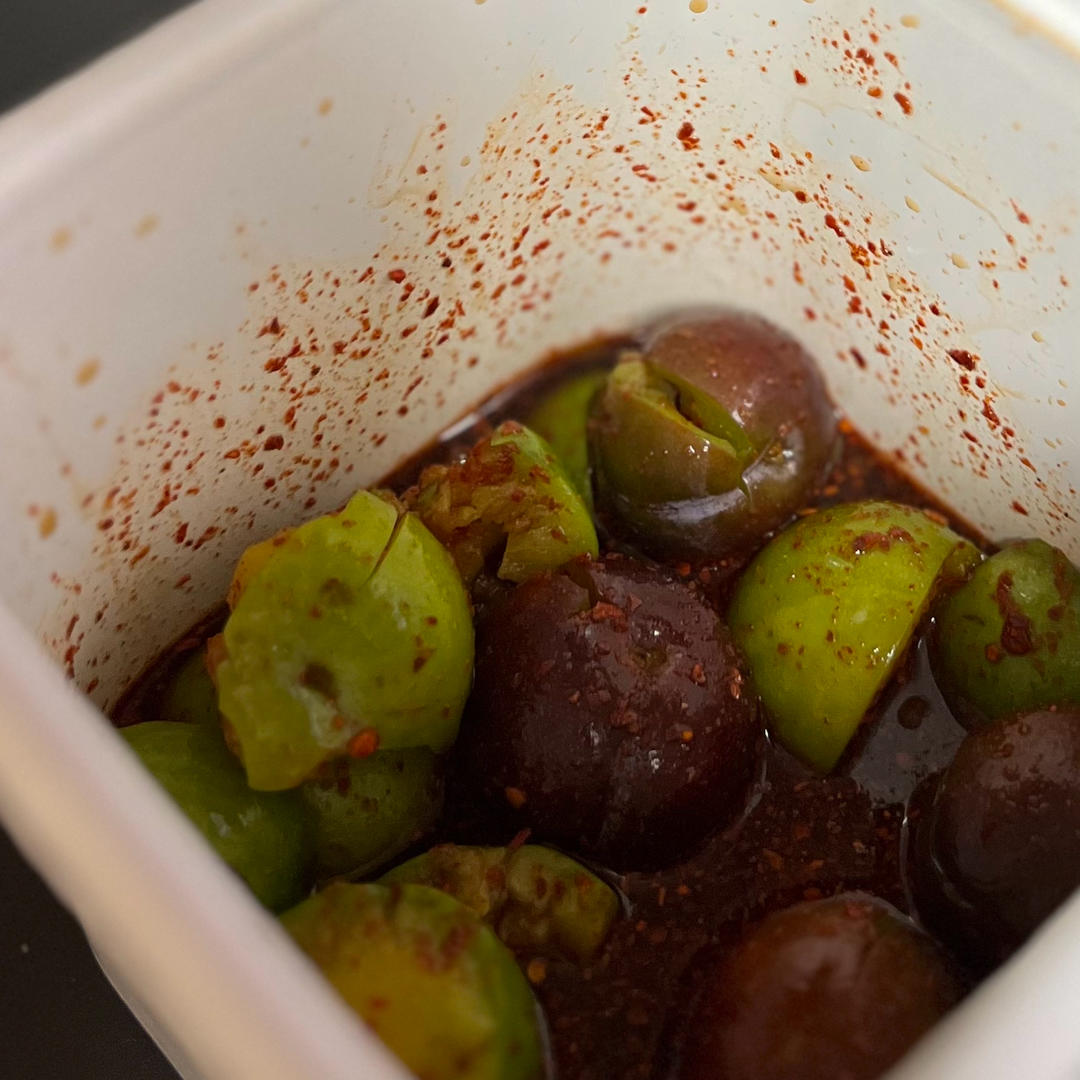暴捶李子(辣椒粉,糖浆,陈醋,盐)