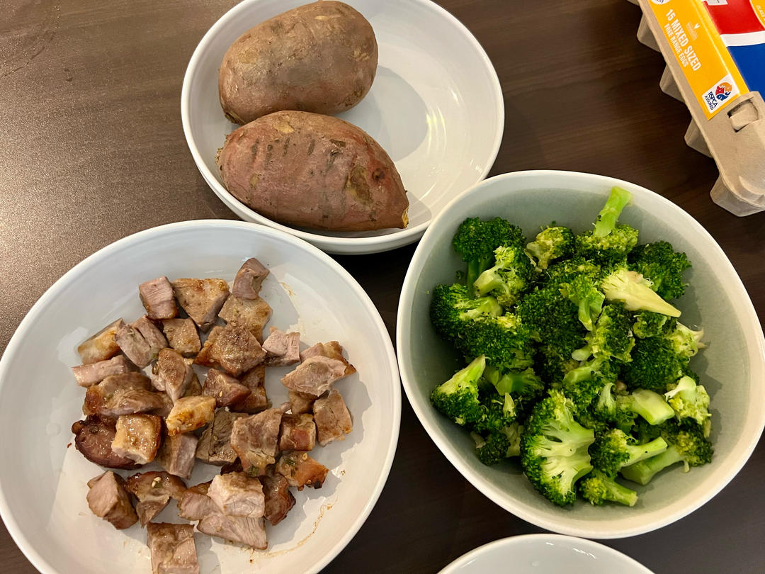 红薯泥,鸭胸肉,时蔬