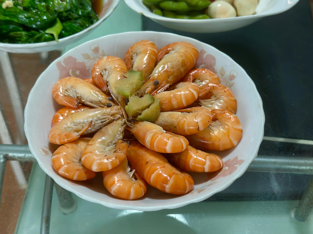 白灼虾🦐+白灼生菜🥬+糟毛豆鹌鹑蛋