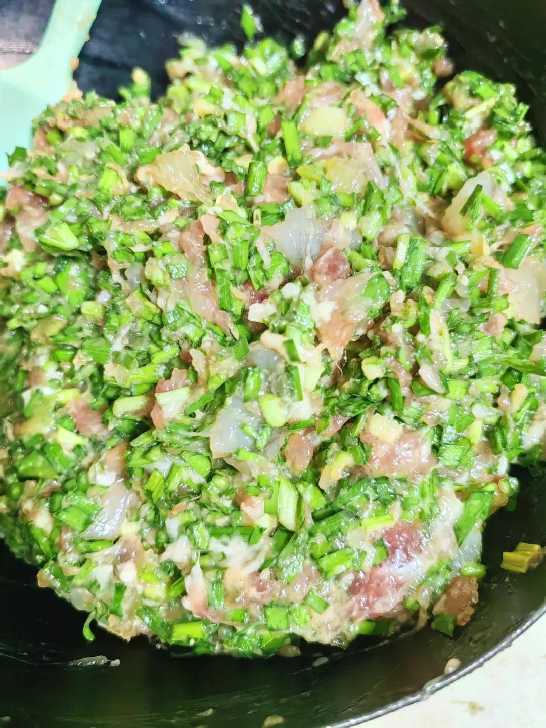 入伏前剪韭菜,养根,立秋后再吃韭菜,20天后。饺子馅,韭菜,土猪肉🥩🐷鲜虾🦐🦐猪皮冻饺...