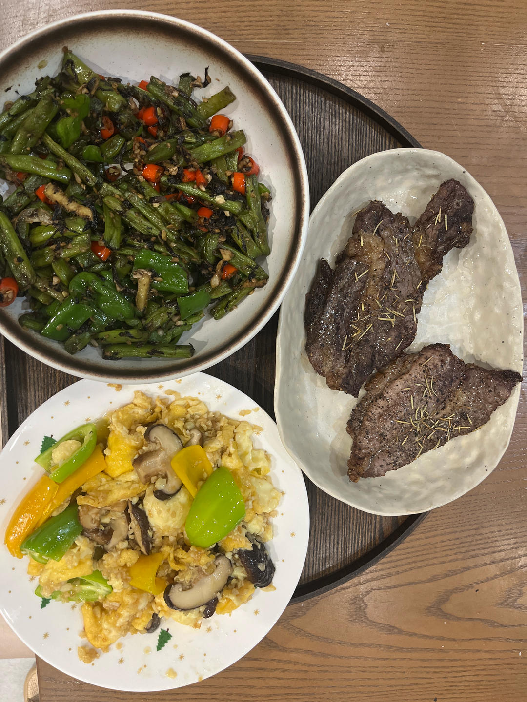 烤牛排很好吃,玉子豆腐油放多了(罪恶但很好吃),四季豆火候有点过,呜呜