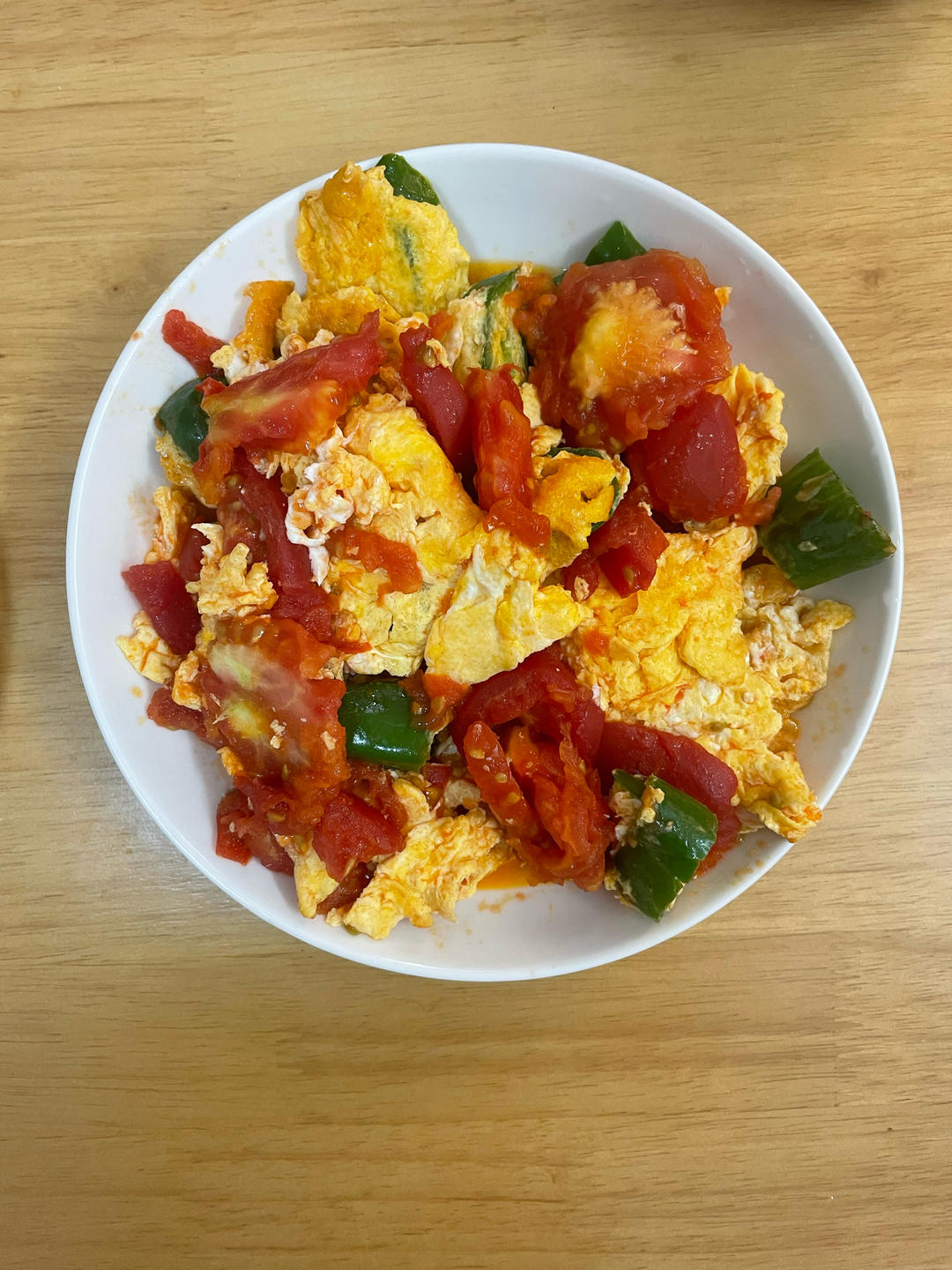 番茄炒蛋,放一点辣椒很鲜