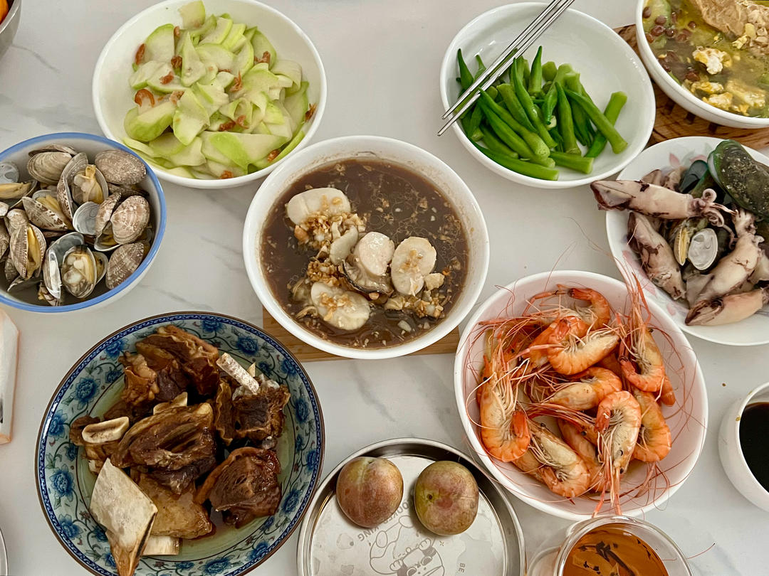 🤡家的午餐,海鲜超多!大虾带子扇贝海兔,蘸芥末酱油或者蒜蓉蒸都很好吃😋