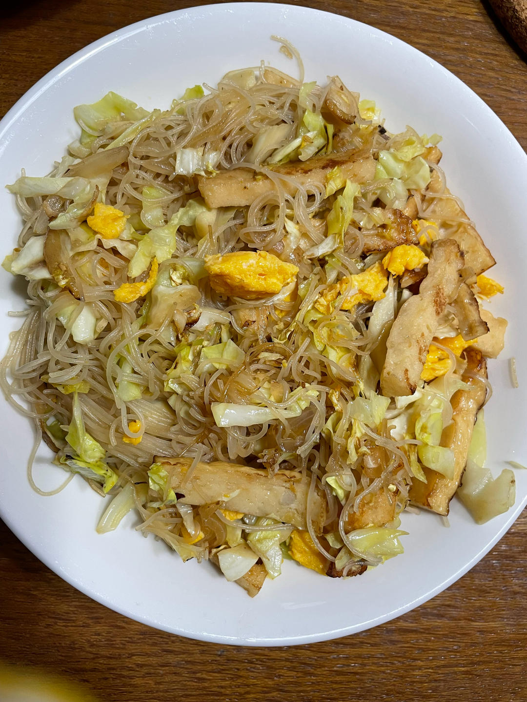 炒米线,烤三文鱼,土豆,莲花白,味增汤