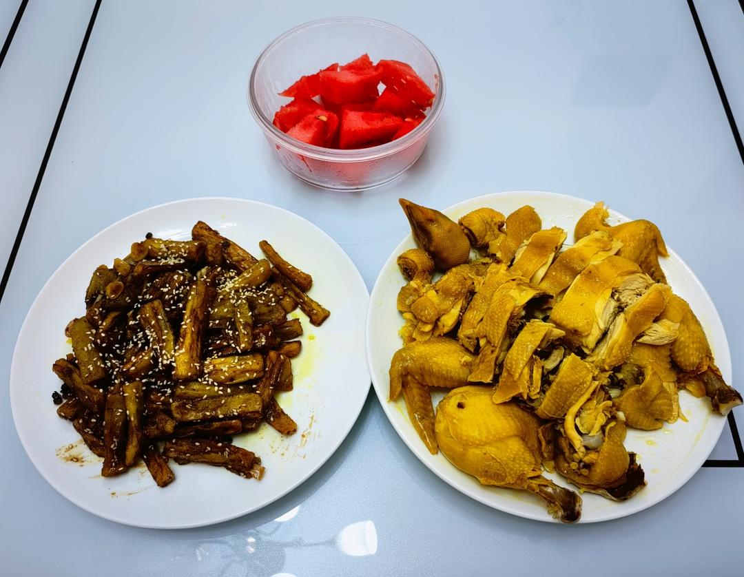 盐焗鸡,怪味茄子🍆🍚🍉🍉